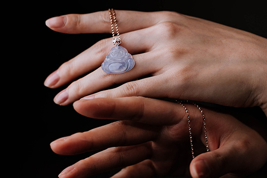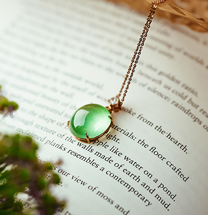 五分色所售翡翠皆为A货,镶嵌皆用18K金和钻石