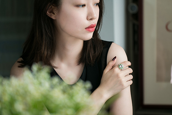 摩登荧光翡翠戒指