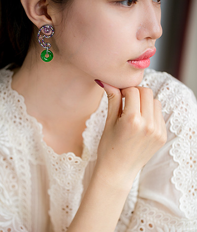 冰绿心耳环