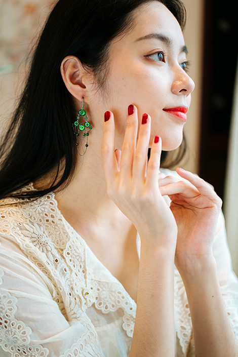 维多利亚蕾丝老坑绿耳环