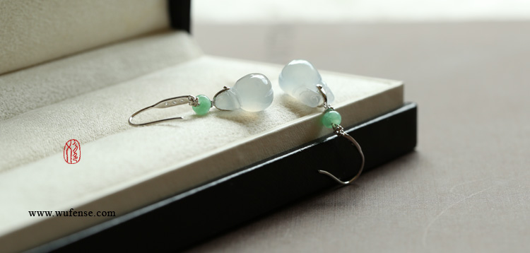阳绿福禄坠和老料花青耳环
