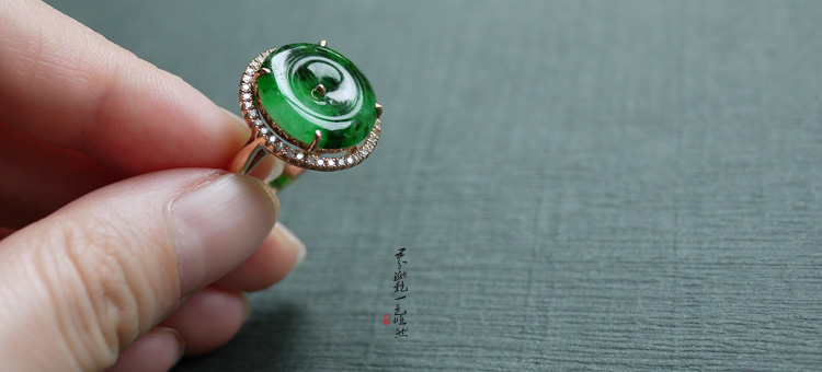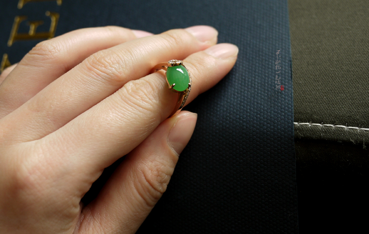 弧形浓绿蛋戒