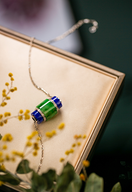 翡翠尺寸:直径13.7mm,长度10.5mm