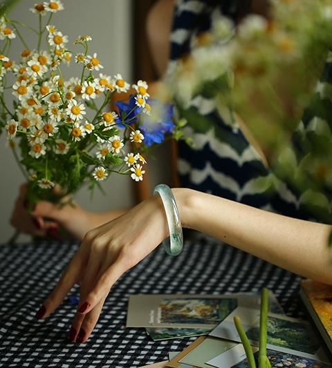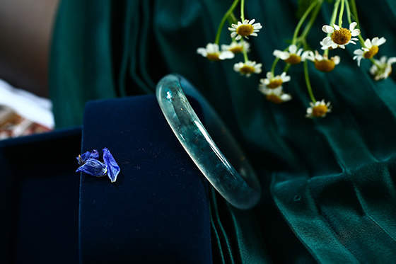料子耐看,轻灵水透,各光线下看有些爱不释手的美镯