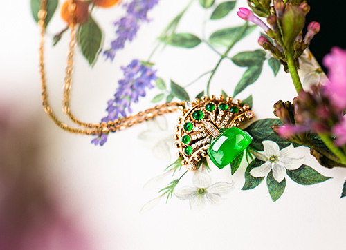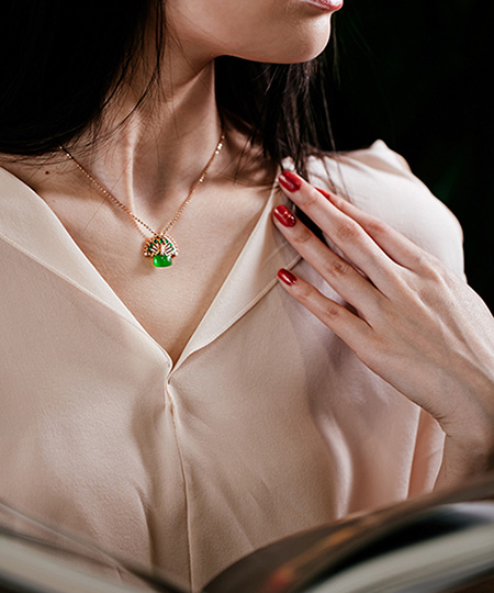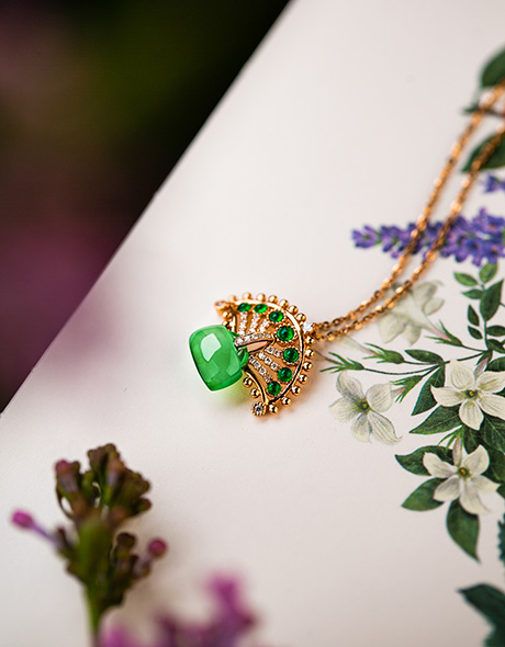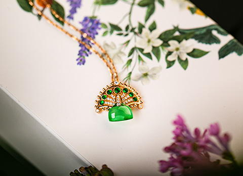 设计了孔雀屏以祖母绿点缀,寓意“前程如锦”,锁寓“吉意平安”