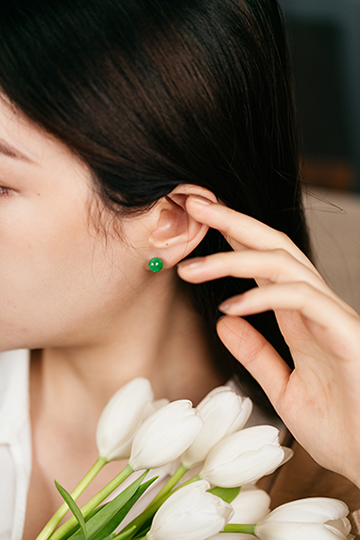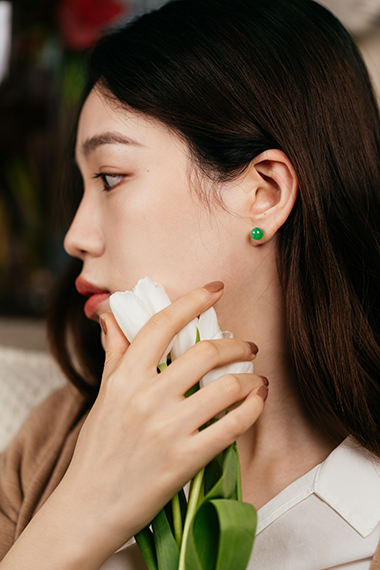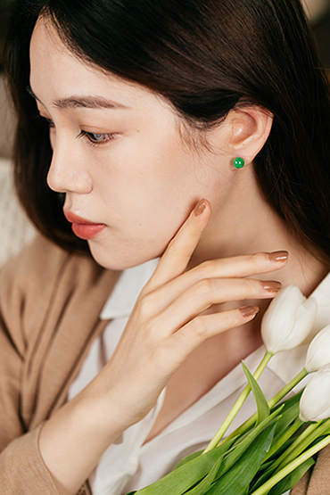 一点点缀回归翡翠本身的素美,美貌耳钉