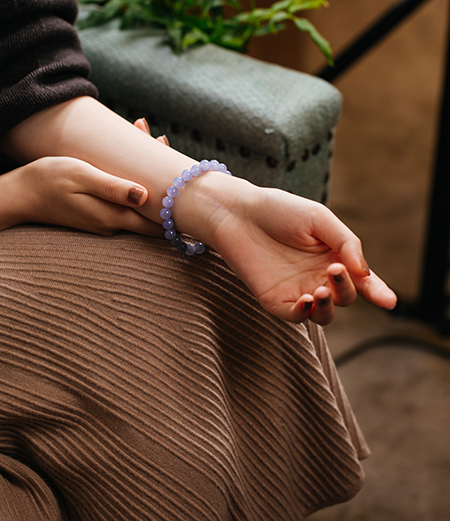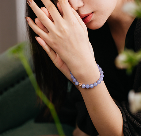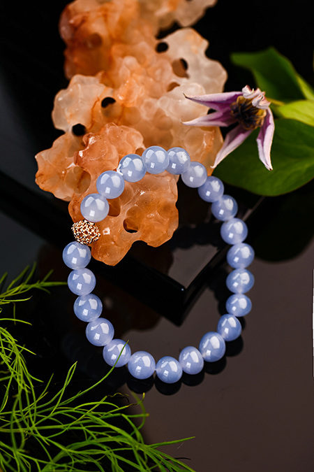 PS:冰种上的紫色常常非常淡,有时要用意念才能看到。而这串难得的紫色明显,浓度挺好,是比较少见的冰紫翡翠。