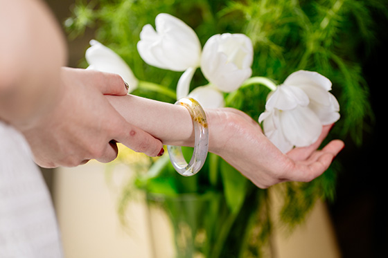 P S:同等情况下,双色镯比单色镯贵很多。因为大自然苛刻地质条件使不同致色元素出现在同块料子上的几率很小,就算成了双色也常杂乱不堪,优美的很少,所以双色一直是贵价品类。
