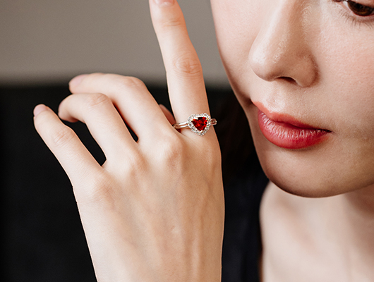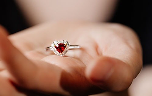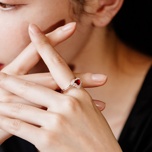 喜欢的心形,别致美貌的戒指,浓度也很好(红宝石中深红比浅红价值高)。附吉尔德证书
