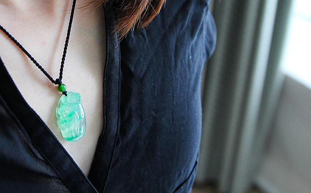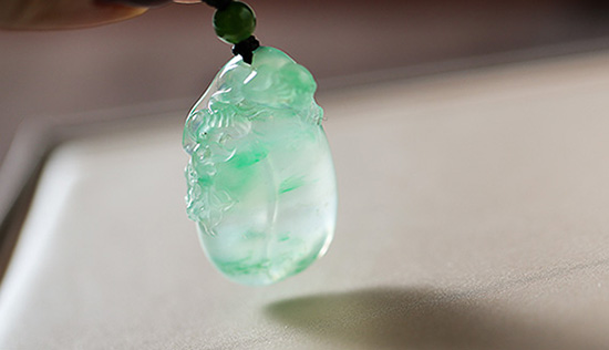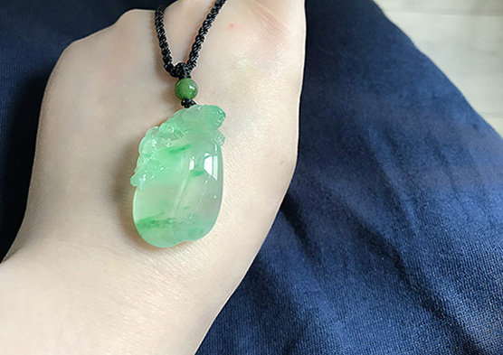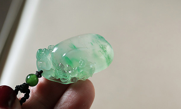 因为种太好,胶感流动,在不同光线折射下,莹透感毕现。上身灵动,肥美的绿坠。